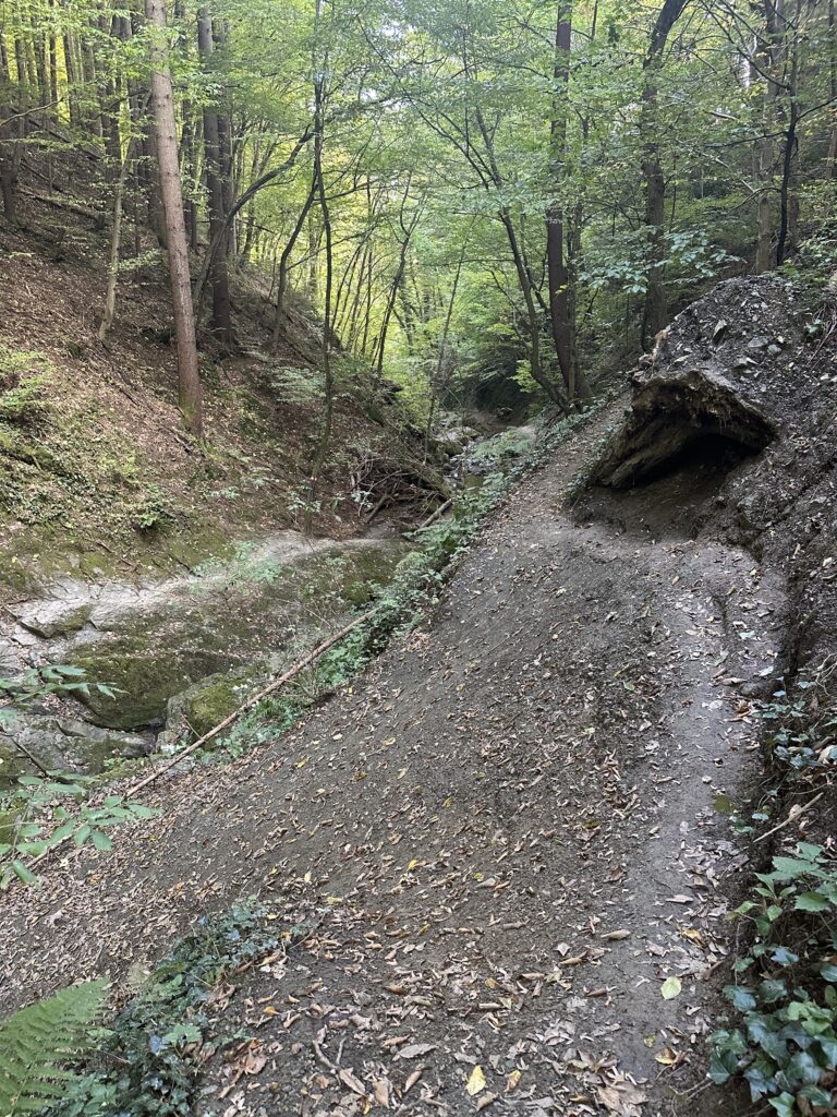 Festes Schuhwerk ist hier aufjedenfall Pflicht! Mit Crocs, Flipflops, Sandalen, Abendschuhen oder Schuhen mit Absätzen bist du hier definitiv falsch! Du kannst dich ansonsten leicht am Fuß verletzen in der Klamm abrutschen und stürzen. Nochmal: Es handelt sich um einen unbefestigten, unebenen und teils durch Feuchtigkeit und Schlamm rutschigen Wanderweg.