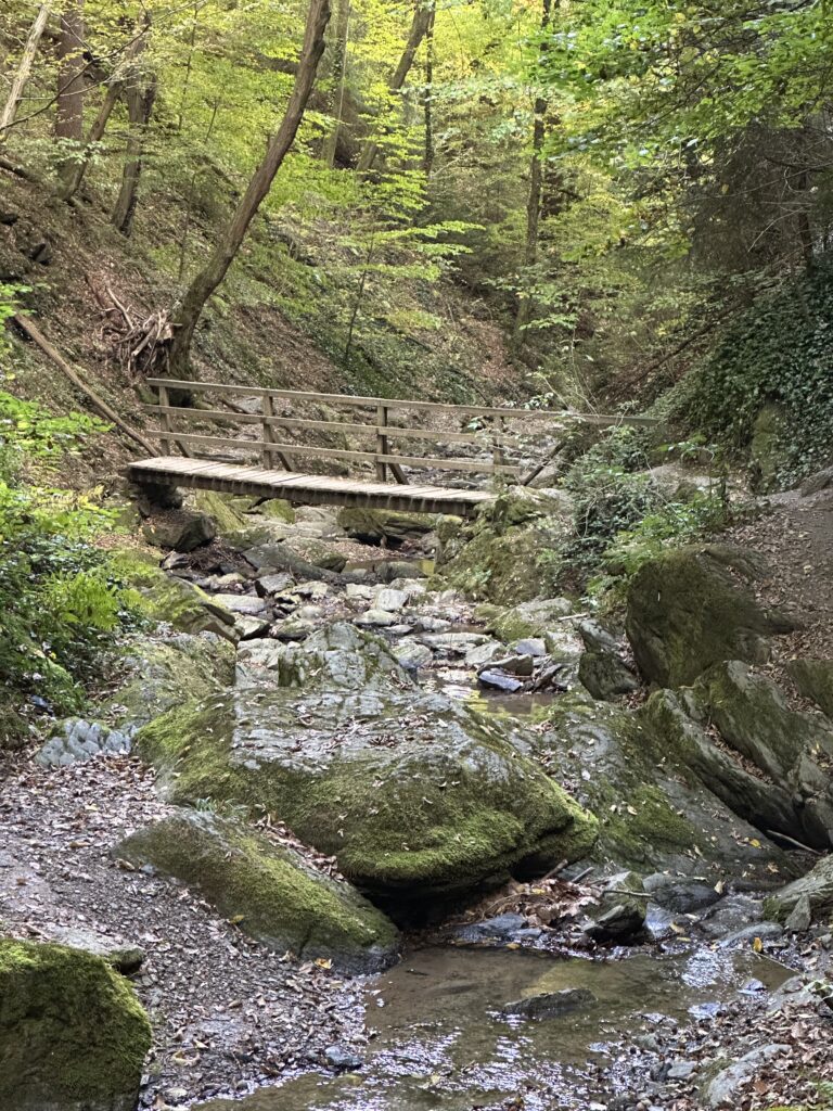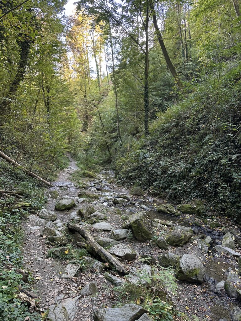 Zu Beginn der Rettenbachklamm überquert du den Rettenbach über eine kleine Betonbrücke und wirst auf den Wanderschildern nochmal auf die Schwierigkeit der Klamm hingewiesen. Dann geht es entlang des Rettenbachs entlang auf einem kleinen Weg in die Klamm hinein. Hier beginnt dich der Wald und der Schluchtboden mehr zu umschließen, und die Stadt verschwindet vollständig. Meist ist der Rettenbach auch eher ein plätscherndes Bächlein, als ein tosender Bach. Jedoch kann er bei viel Regen auch anschwellen und mächtiger werden. Dann ist unter Umständen Vorsicht beim Besuch in der Klamm geboten.